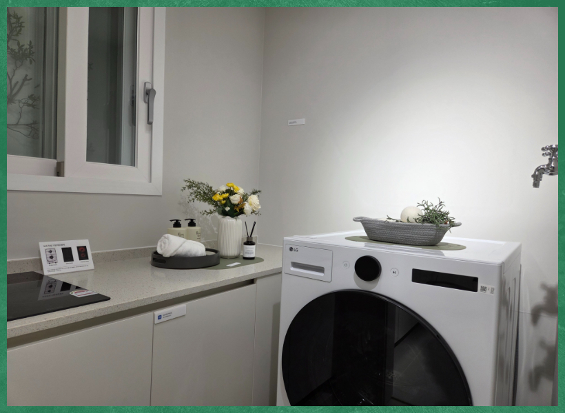 소형 평형에서도 현관 수납과 세탁 동선이 분리되어 설계된 점은 실사용 측면에서 고려 요소가 될 수 있습니다. 다만 실제 시공 및 마감 수준은 향후 확정 설계와 비교해 확인할 필요가 있습니다.
